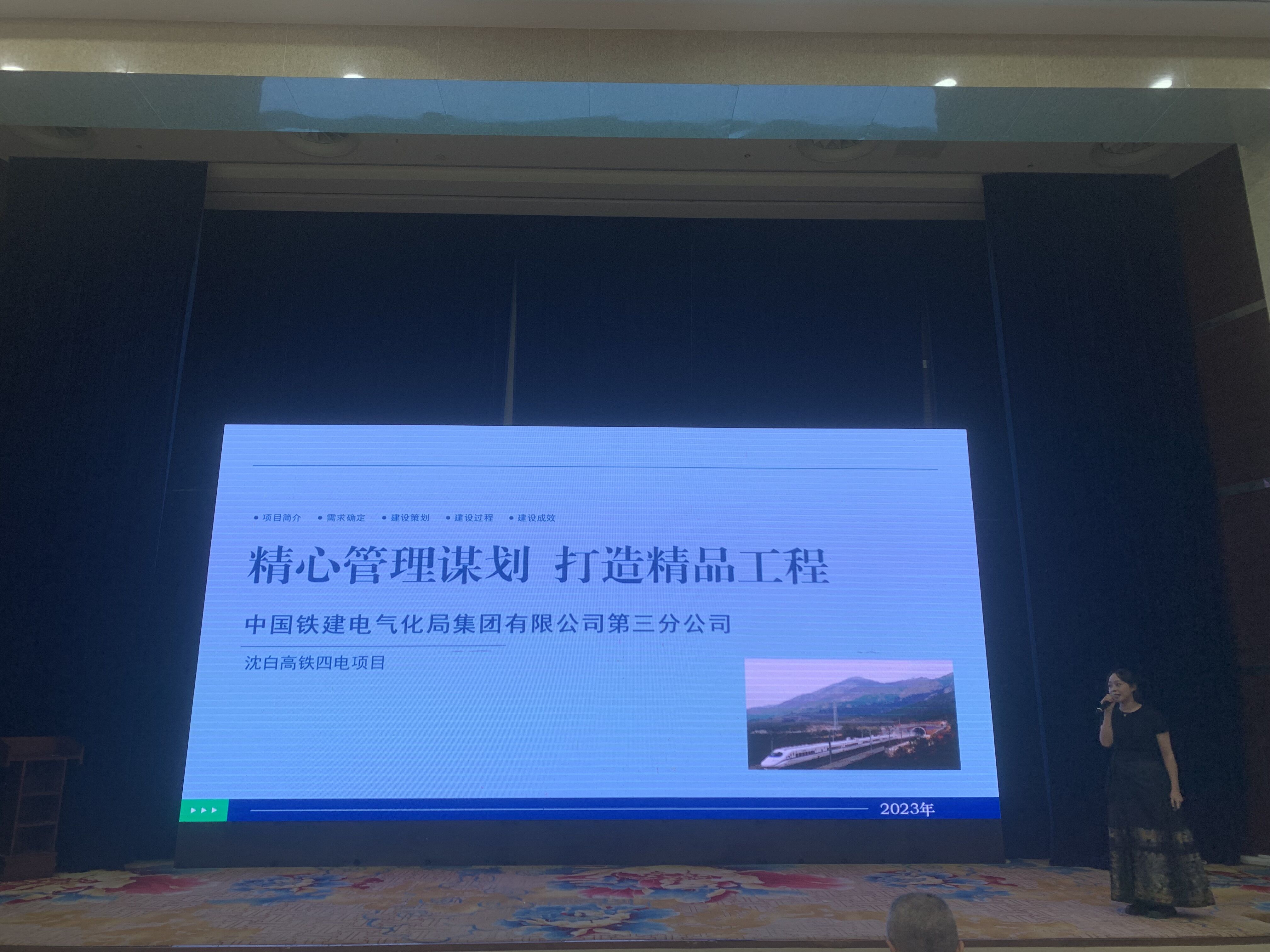 2023年10月12日,中国铁建电气化集团有限公司第三分公司沈白项目参加全国工程建设质量信得过班组建设成果交流会,并现场进行了班组建设成果交流。