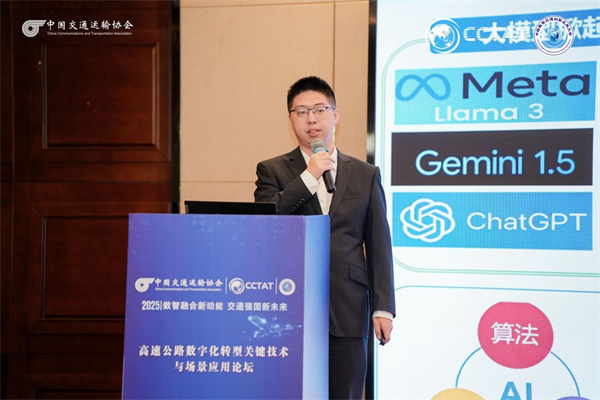 广州国交润万交通信息有限公司首席技术官林水生报告题目为《人工智能+赋能交通基础设施数字化转型升级》。